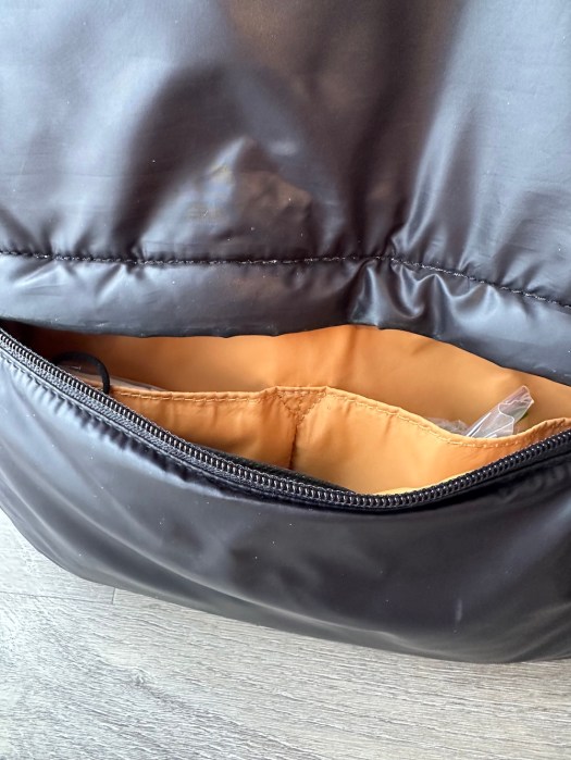 I’ve had mine since May 2019 and it’s held up remarkably well. It’s sustained no marks, scratches, or any other kind of damage. Its material (listed as “water resistant nylon” on the Caraa website) seems to repel cat hair.